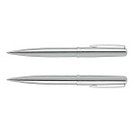 Timeless, classically designed brass ball pen with a silky smooth twist action and shiny chrome accents. The barrel is finished in the choice of lacquered black and matt silver which engrave to a silver mirror finish or a stunning electroplated shiny chrome which engraves to a natural etch. Calais has a black ink large volume refill with 4000 metres of German manufactured DOKUMENTAL ink and a tungsten carbide ball for improved writing quality. It features the Pierre Cardin logo tastefully engraved on the centre ring and can be presented in an optional velvet sleeve or a superb Pierre Cardin gift box.